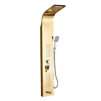 Panel de ducha de latón montado en la pared para baño moderno, grifos mezcladores termostáticos chapados en oro con patrón de pulverización suave de triple manija